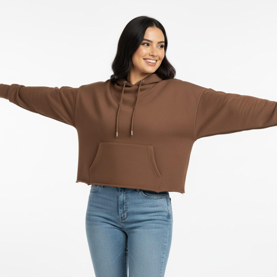 เสื้อมีฮู้ดเอวลอยน้ำหนักเบาสำหรับผู้หญิงเสื้อออกกำลังกายแฟชั่นแบบลำลองสำหรับใส่ไปยิมเล่นโยคะ