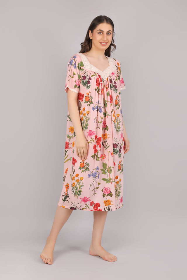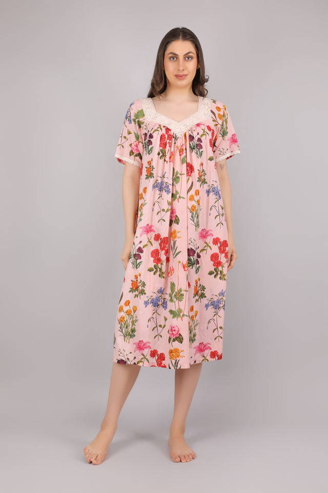 ชุดนอนผ้าฝ้ายสำหรับผู้หญิงชุดเดรสกลางคืนสำหรับฤดูหนาว