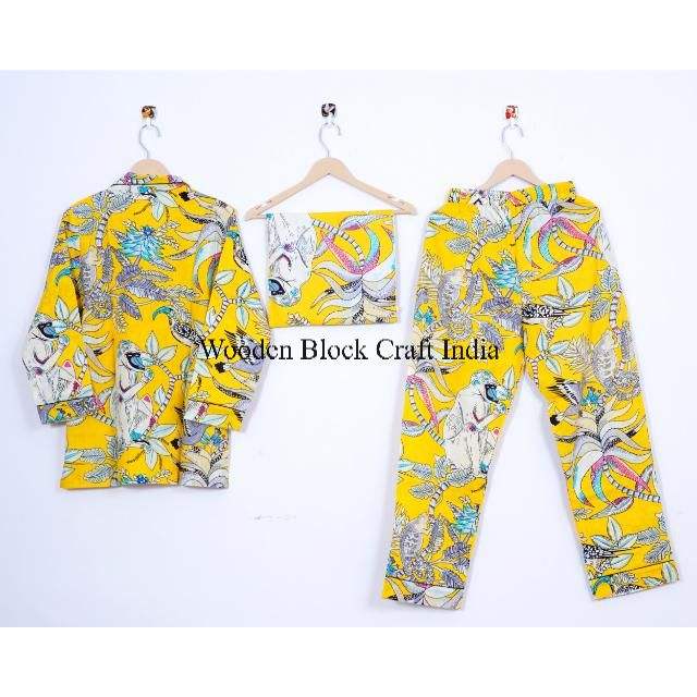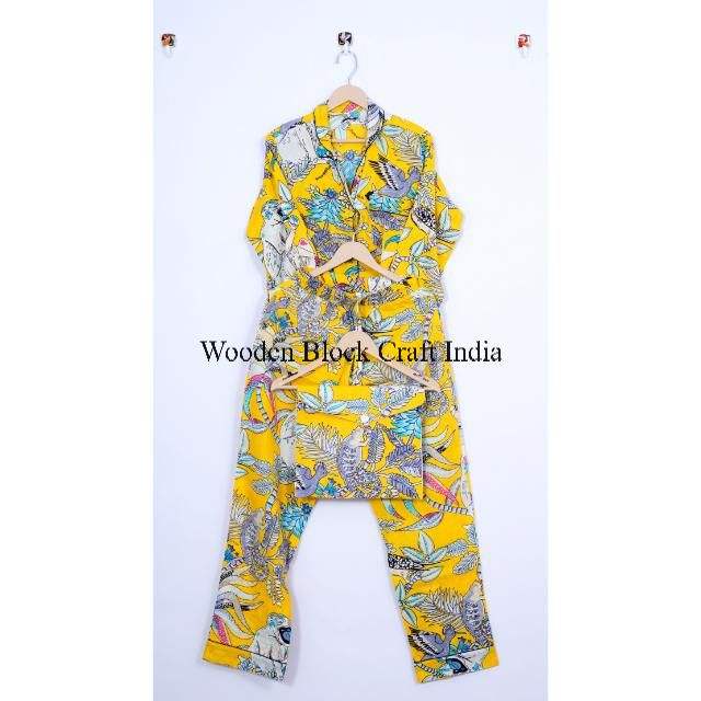ชุดนอนผ้าฝ้ายพิมพ์ลายลิงสำหรับผู้หญิงชุดนอนแขนยาวเข้าชุดเสื้อนอน