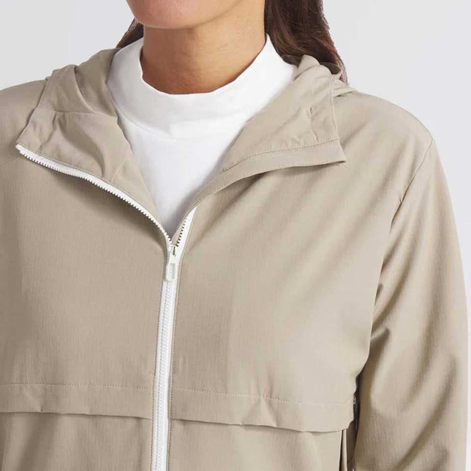 แห้งเร็ว, กันน้ำ, กลับได้, ระบายอากาศ, เป็นมิตรกับสิ่งแวดล้อม, กันลม, บุผ้าสองชั้น, ร้อนจัด, ต่อต้านริ้วรอยลักษณะ
