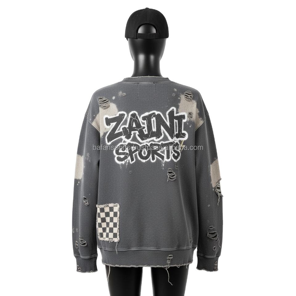 เสื้อสเวตเตอร์ผ้าฝ้ายขนแกะฟอกสำหรับผู้หญิงเสื้อสเวตเตอร์ระบายอากาศพิมพ์ลายโลโก้แบบกำหนดเองสีเทา