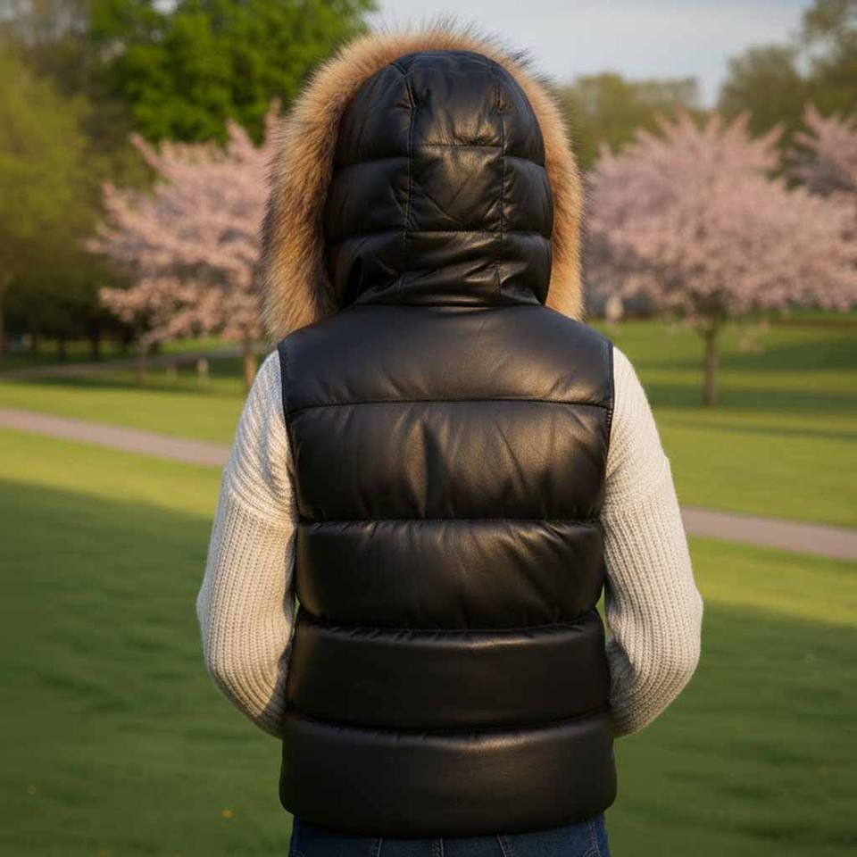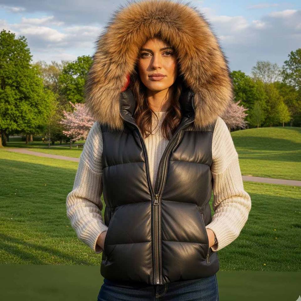 เสื้อกั๊กหนังบุขนสัตว์สำหรับผู้หญิง พร้อมฮู้ดขนจิ้งจอก ปิดด้วยซิป บุด้วยใยฝ้าย กันลมและระบายอากาศได้ดี