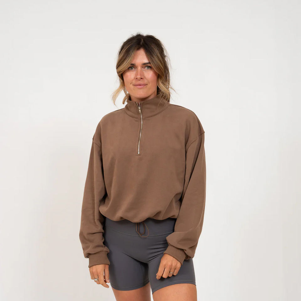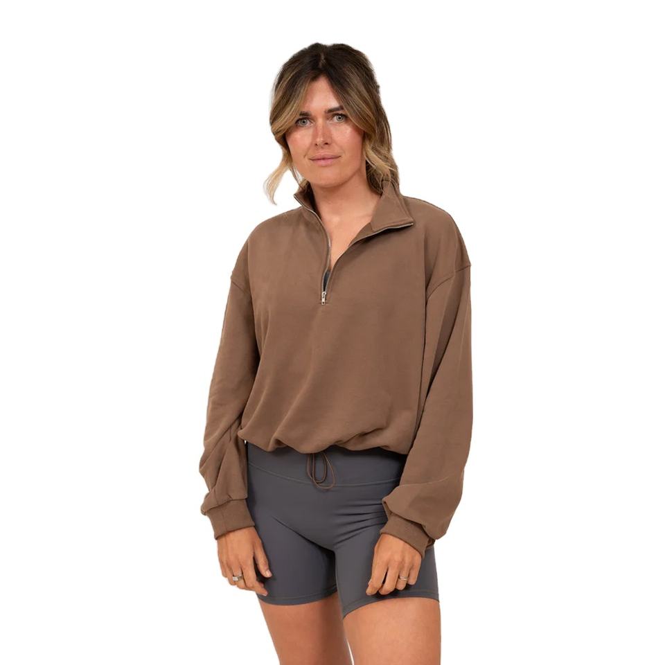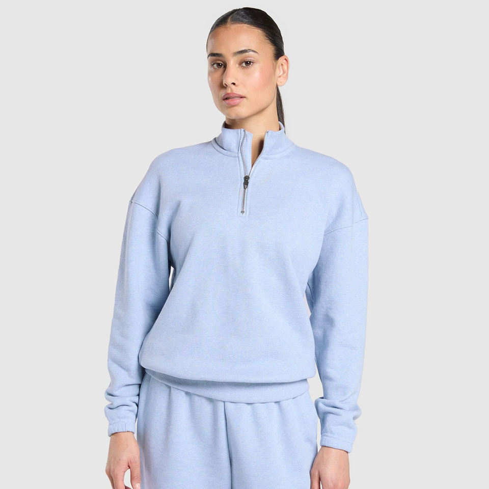 Women's 1/4 Zip Fleece Sweatshirt with Front Custom Logo Breathable Oversized Drawstrings Drop Shoulder