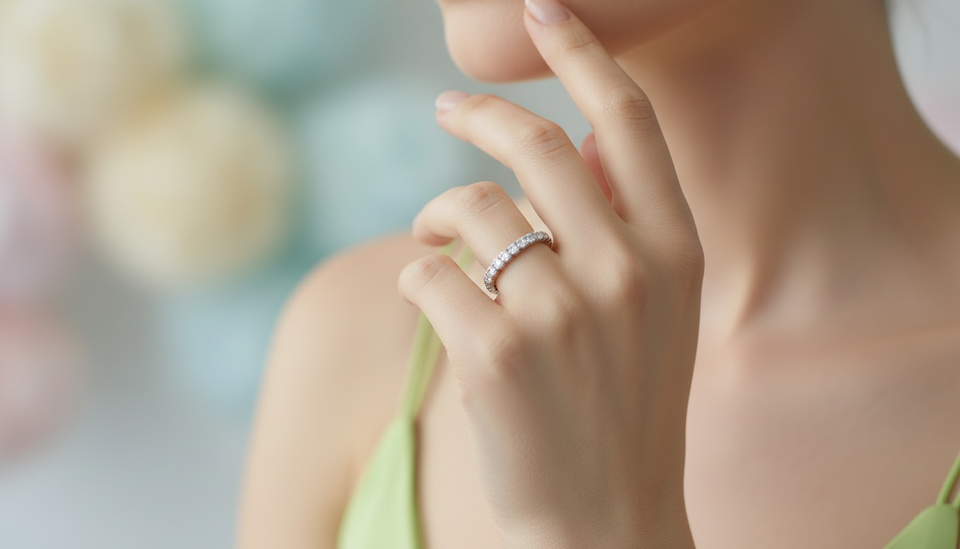 แหวนแถบครึ่งวงประดับเพชรสำหรับผู้หญิง ดีไซน์ทันสมัย
