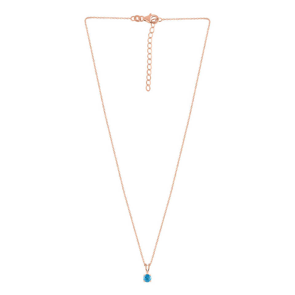 สร้อยคอจี้เงินแท้โรสโกลด์ประดับบลูโทแพซสังเคราะห์ 1 กะรัตสำหรับผู้หญิง พร้อมสายสร้อยยาว 18 นิ้ว และตัวต่อขยาย 2 นิ้ว