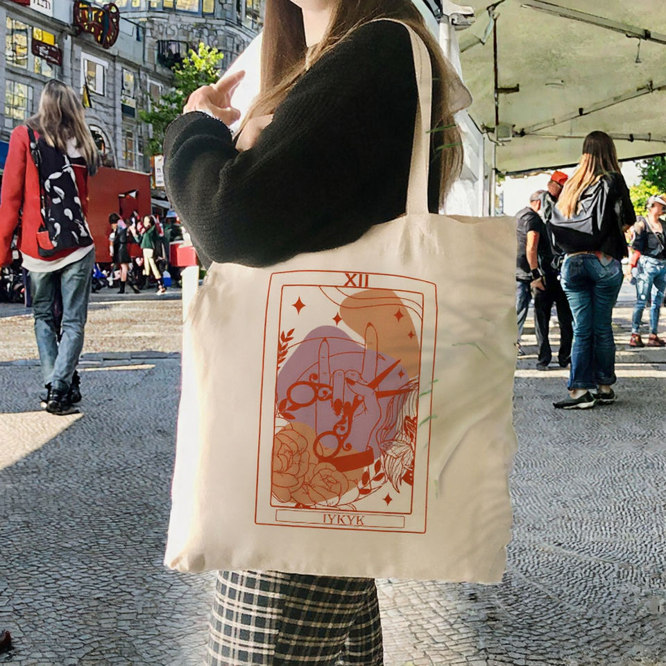 กระเป๋าผ้าใบสะพายไหล่สำหรับผู้หญิง1ชิ้นใช้ซ้ำได้พิมพ์โลโก้ฤดูหนาวลายดอกไม้ออกแบบได้ตามต้องการช้อปปิ้งแบบส่วนตัว