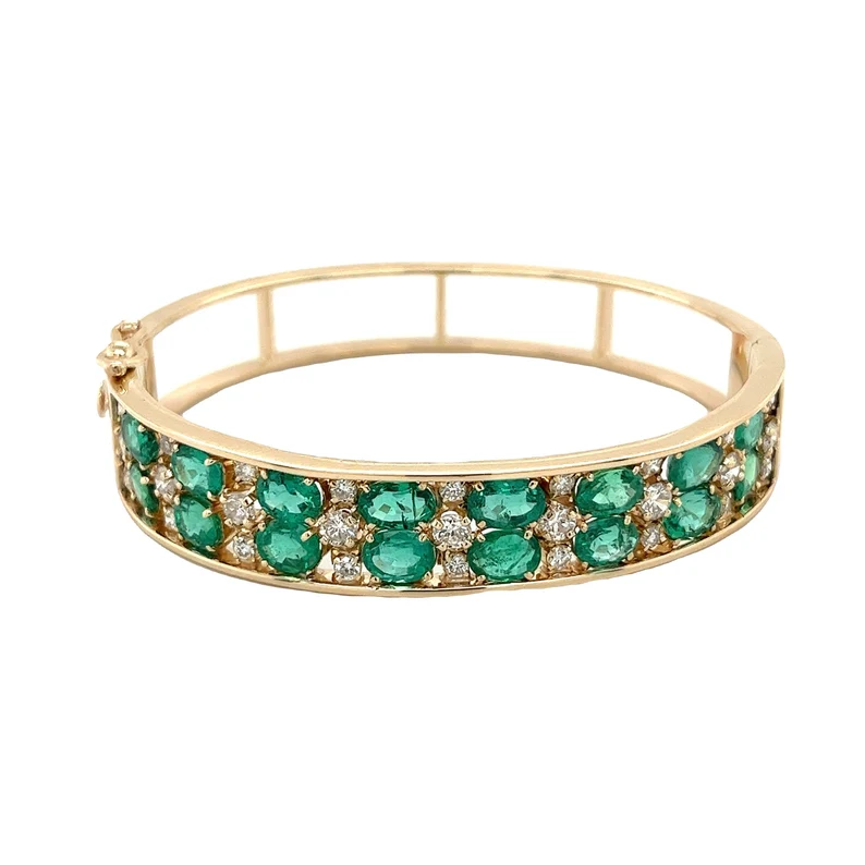 กำไลข้อมือสองแถวชุบทองคำขาว 18K ประดับมรกตธรรมชาติ 10 กะรัตสำหรับผู้หญิง ดีไซน์กรงทองคำทรงรีประดับเพชรทรงรี วินเทจ เหมาะสำหรับงานแต่งงาน