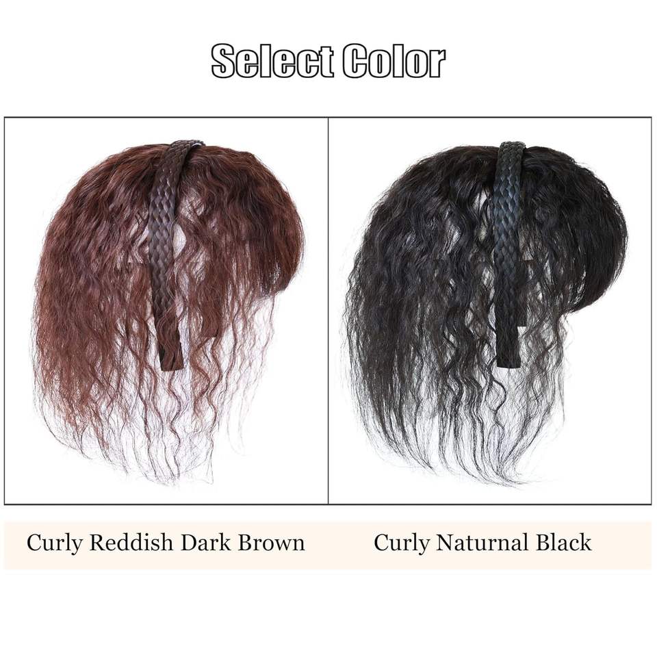 ที่คาดผมถักเปียสำหรับผู้หญิง10 "พร้อมวิกผมตรงสีดำธรรมชาติหน้าม้าสีน้ำตาลเข้มสีแดงเข้มวิกผมปลอมฐานลูกไม้