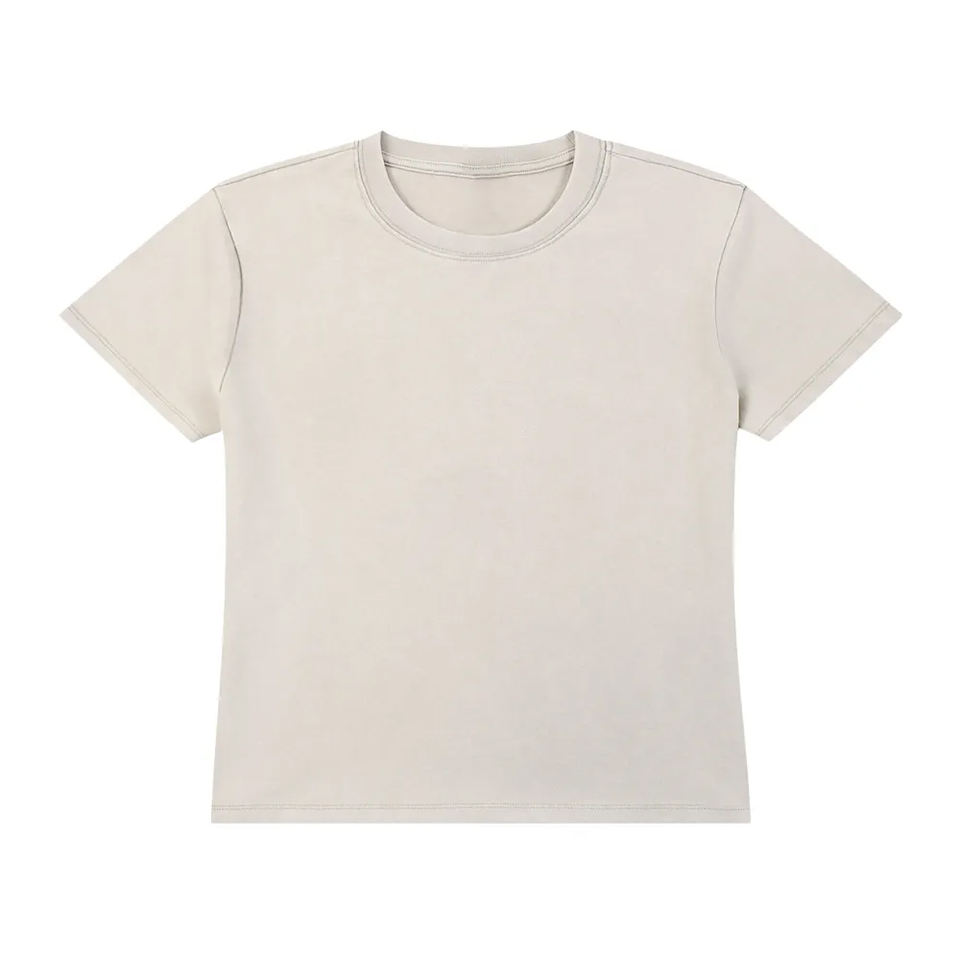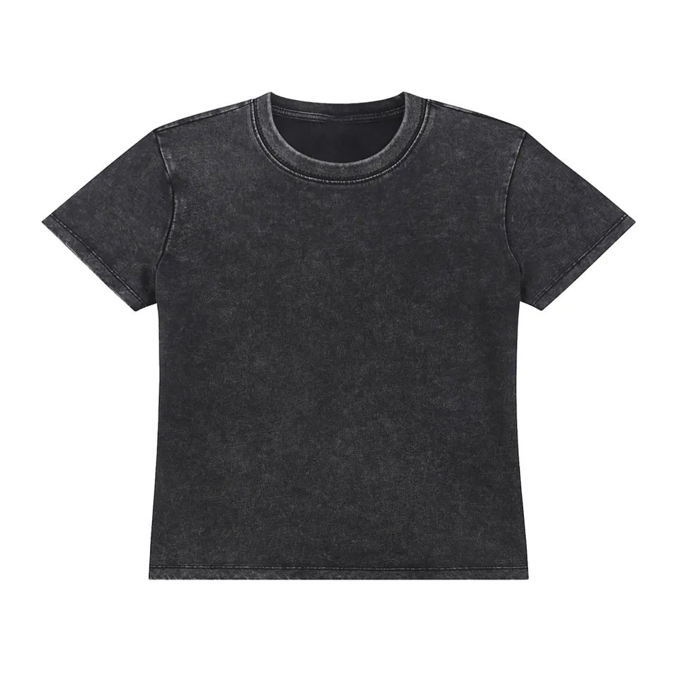เสื้อยืดแขนสั้นผู้หญิง ผ้าฝ้าย 100% 230GSM วินเทจ ล้างสีแบบแอซิด คอกลม สไตล์สตรีทแวร์ แนววิทยาลัย/มหาวิทยาลัย