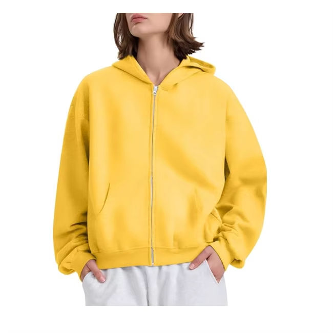 เสื้อฮู้ดครอปคอเต่าผู้หญิง ผ้าฝ้าย 100% ซิปหน้า แขนสั้น ผ้าฟลีซหนานุ่ม สไตล์ลำลอง รับผลิตแบบ OEM