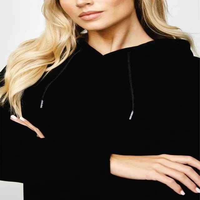 ชุดวอร์มผ้าฝ้ายขนแกะแขนยาวเข้ารูปสำหรับผู้หญิงชุดวอร์มสีดำล้วนพิมพ์ลายขนาดพิเศษชุดวอร์มเล่นกีฬา100%