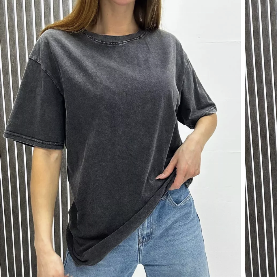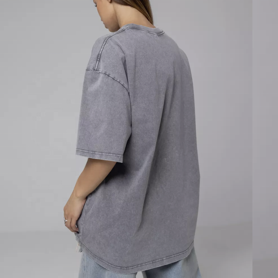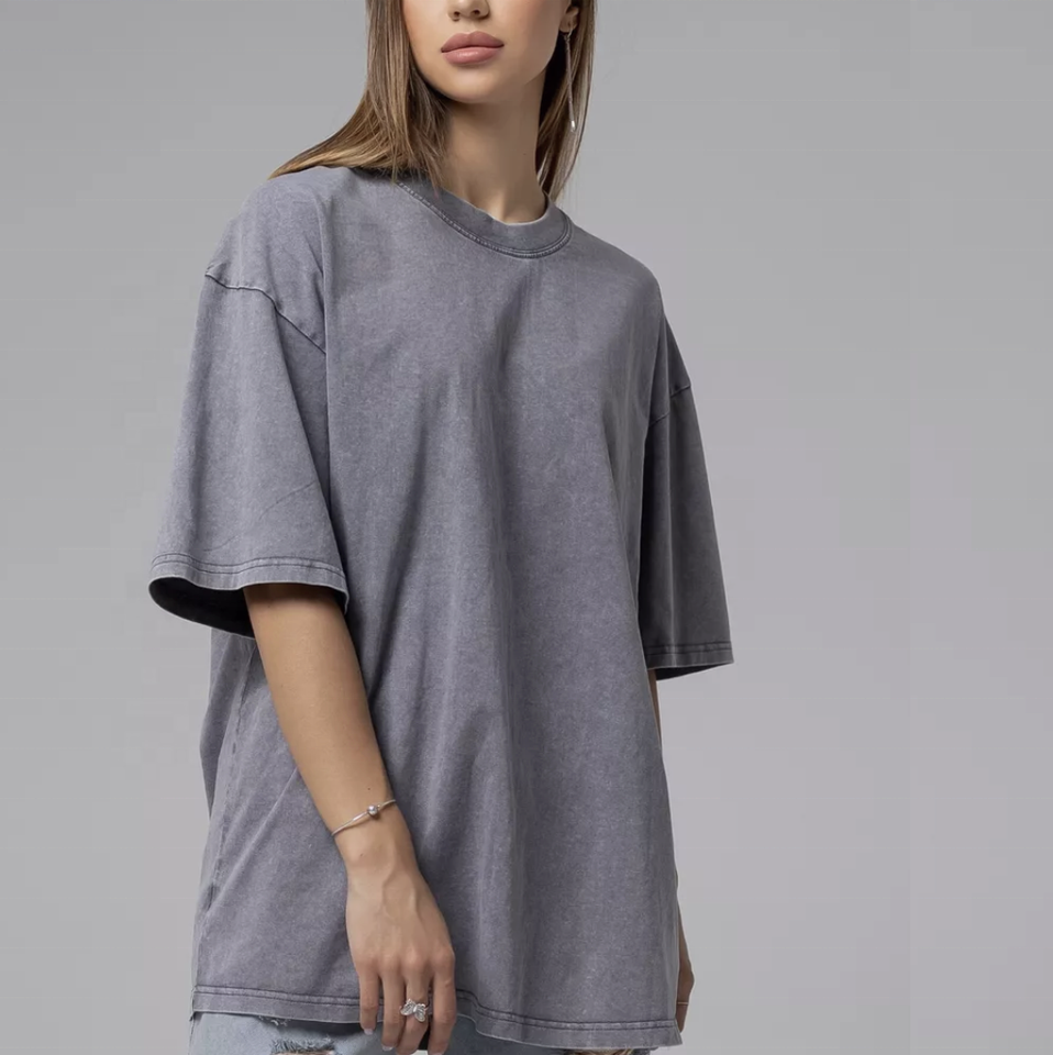 เสื้อยืดผู้หญิง คอตตอน 100% ผ้าหนา ซักย้อมสีแบบแอซิดวอช ทรงบ็อกซี่ ไหล่ตก โอเวอร์ไซส์ สไตล์วินเทจ ยูนิเซ็กส์ สีพื้น แขนสั้น สำหรับฤดูใบไม้ร่วง