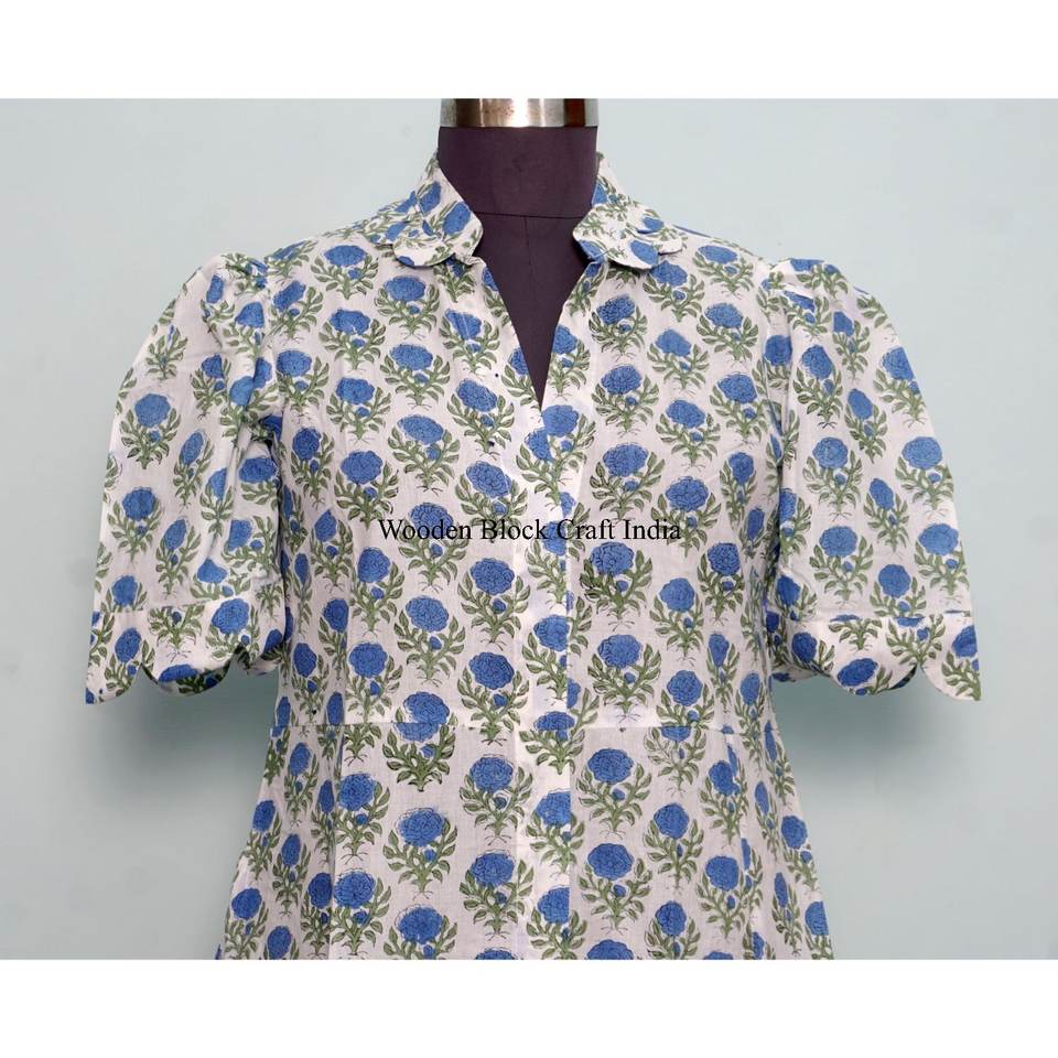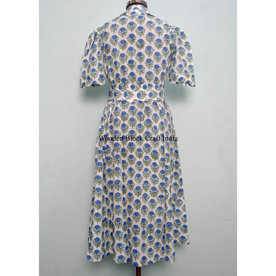 เดรสสั้นผ้าฝ้ายแท้ 100% ลายดอกพิมพ์มือ สไตล์คังกูร่า น่ารัก ใส่ได้ทุกวัน ใส่ไปงานปาร์ตี้ได้ ลายเรียบๆ สไตล์หวานๆ ทรงเอไลน์