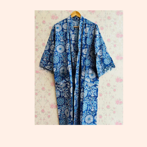 ชุดคลุมกิโมโนผ้าฝ้ายแท้ 100% สำหรับผู้หญิง พิมพ์ลายดอกไม้ด้วยมือ เหมาะสำหรับฤดูร้อน ฤดูหนาว ฤดูใบไม้ร่วง และฤดูใบไม้ผลิ