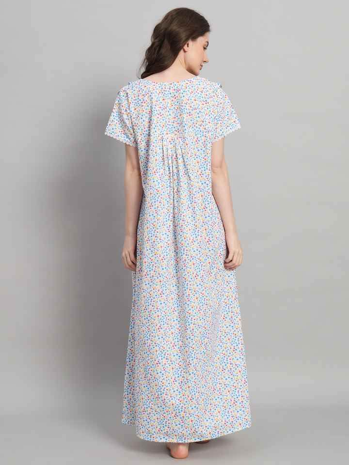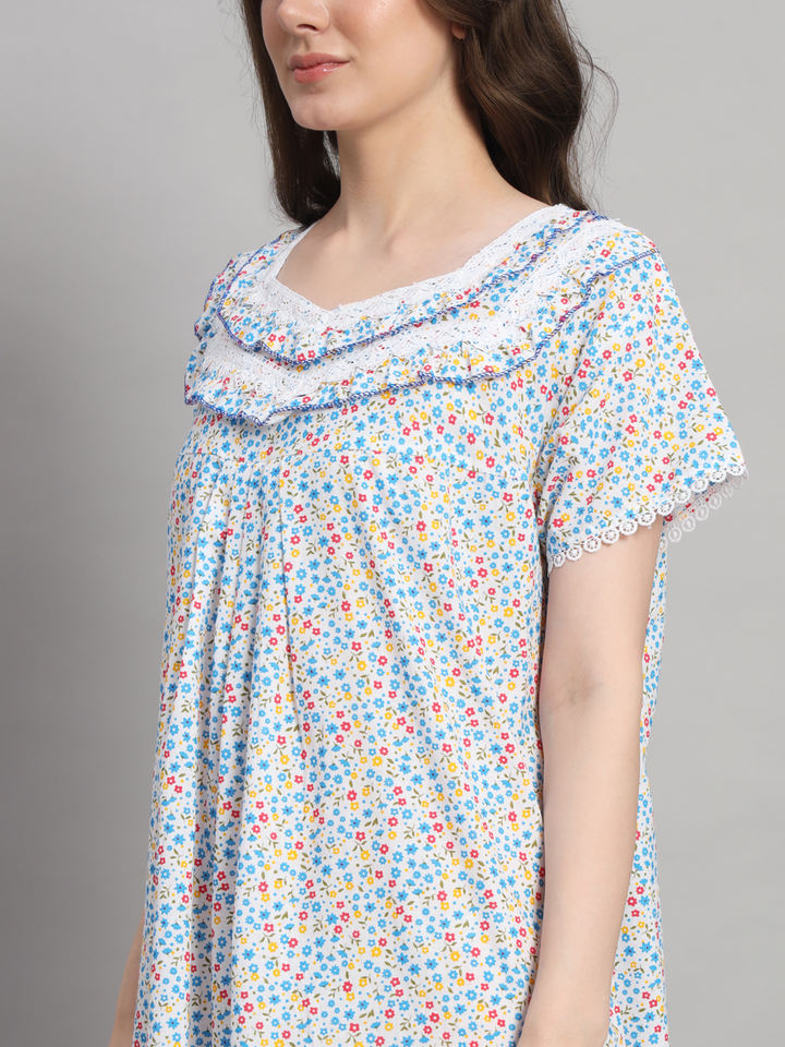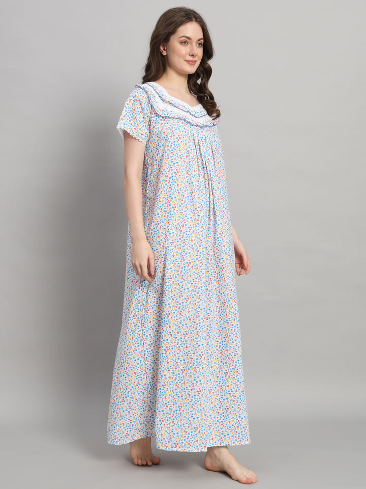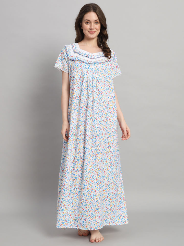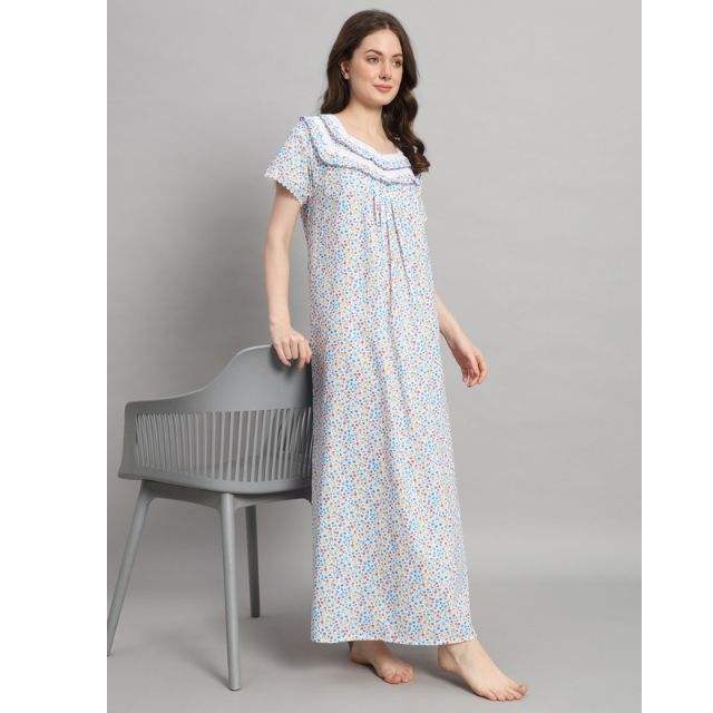 ชุดนอนผ้าฝ้ายแท้ 100% สำหรับผู้หญิง แขนสั้น ยาวเต็มตัว ผ้าระบายอากาศ คอพิมพ์ลายดอกไม้ ดีไซน์หรูหรา สำหรับฤดูร้อนและฤดูใบไม้ร่วง แบบชิ้นเดียว