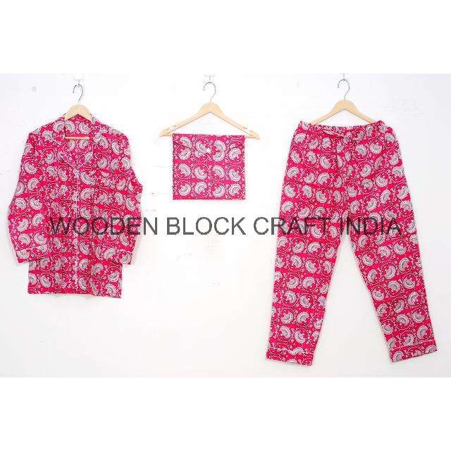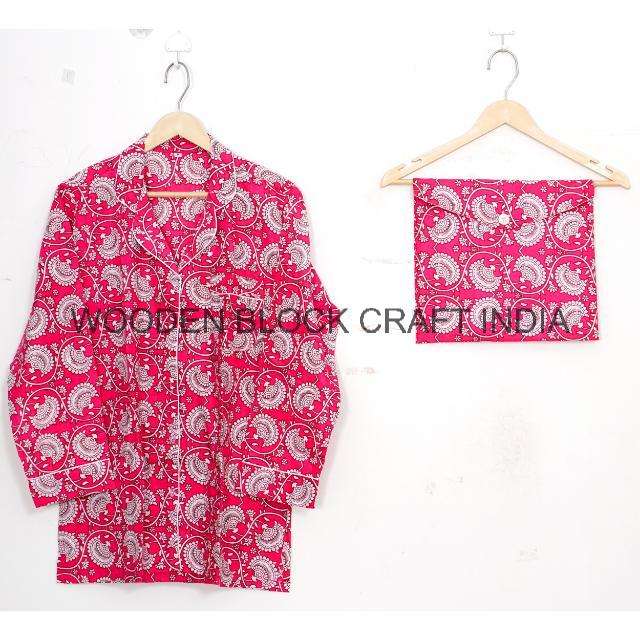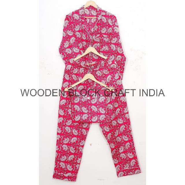 ชุดนอนผ้าฝ้ายแท้ 100% สีชมพูหรูหราสำหรับผู้หญิง ลายดอกไม้พิมพ์ลายด้วยมือ แขนยาว สวมใส่สบาย เหมาะสำหรับฤดูร้อนและฤดูใบไม้ผลิ