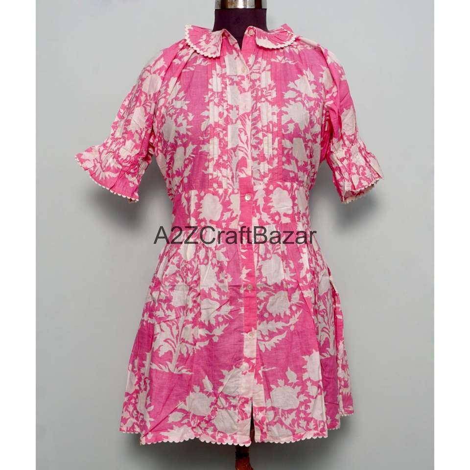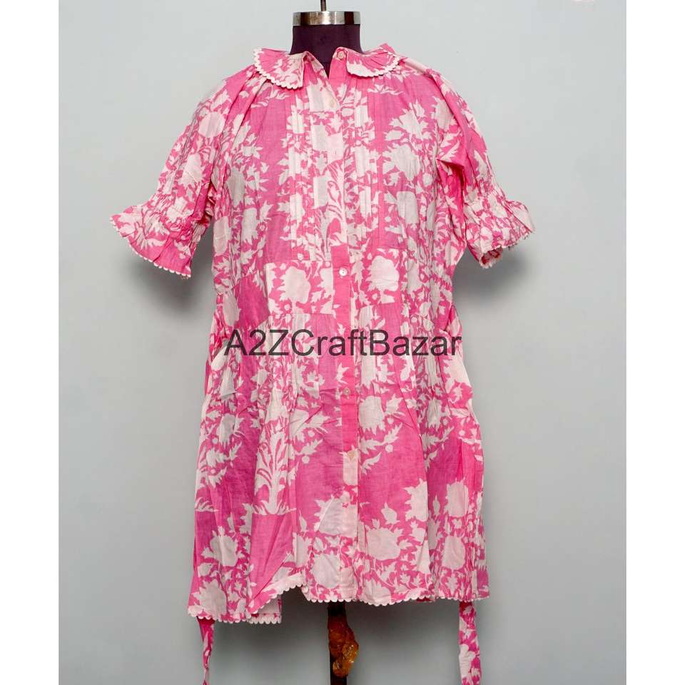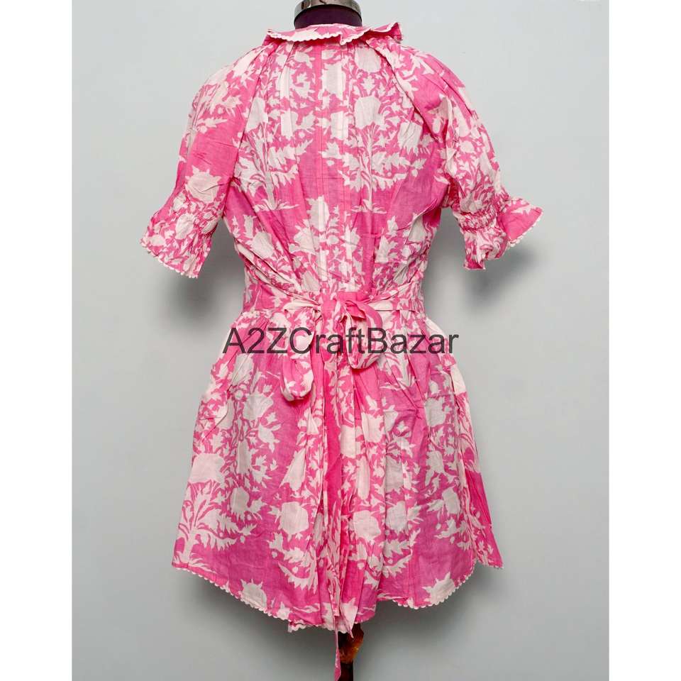 เดรสสั้นผู้หญิงผ้าฝ้าย 100% แขนบานทรงลำลอง คอกลม ลายดอกไม้ เป็นมิตรกับสิ่งแวดล้อม เอวธรรมชาติ