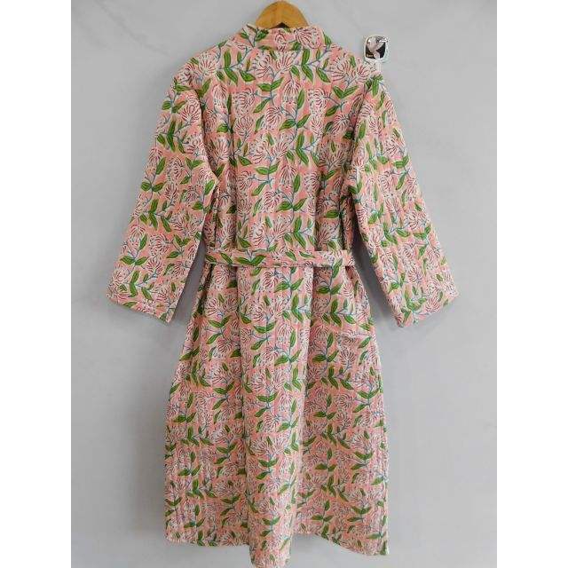 ชุดกิโมโนเสื้อคลุมอาบน้ำบุผ้าคอตตอนสำหรับ100% ของผู้หญิงชุดราตรีพิมพ์ลายดอกไม้สำหรับฤดูหนาวฤดูใบไม้ผลิและฤดูใบไม้ร่วง