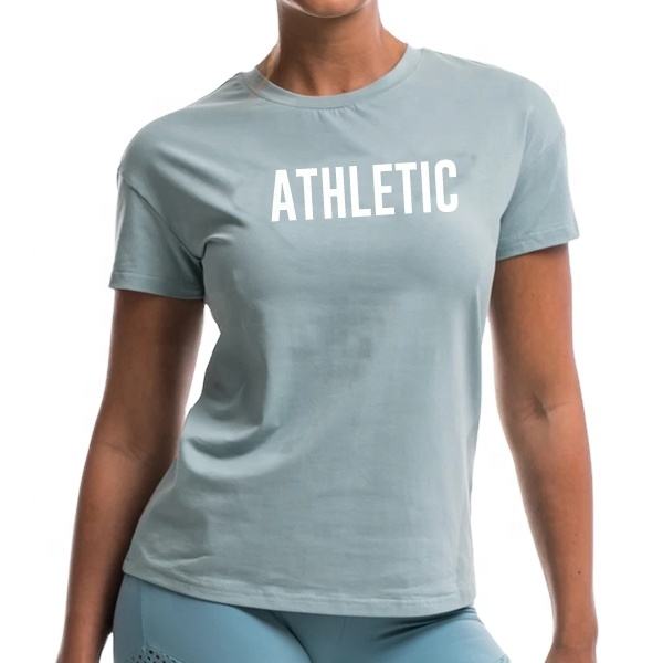 เสื้อยืดแขนสั้นสตรี,ผ้าฝ้าย100% เข้ารูปพิมพ์โลโก้แบบกำหนดเอง