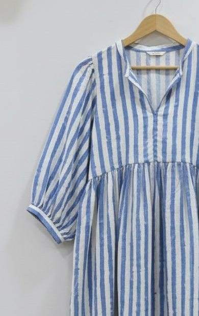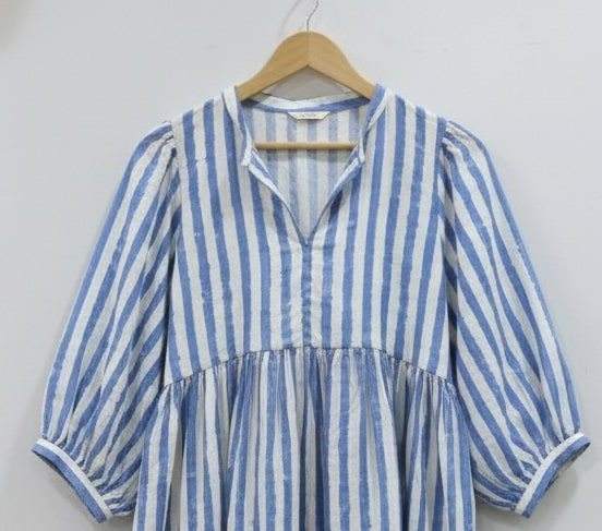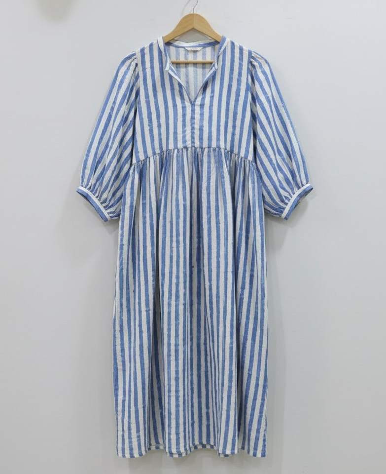 เดรสผู้หญิงผ้าฝ้าย 100% ลายมัดย้อมลายดอกไม้แบบวาดมือ คอวี แขนพอง ทรงเอไลน์ ความยาวปานกลาง | ชุดทำงานที่เป็นทางการ ระบายอากาศได้ดี เป็นธรรมชาติ