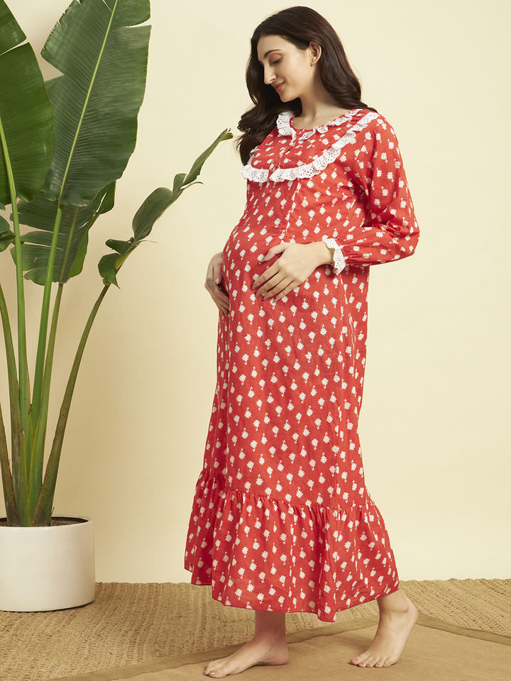 ชุดนอนผู้หญิงผ้าฝ้าย 100% ลายลูกไม้สไตล์วิคตอเรียน แขนยาว ยาวคลุมเท้า ผ้าระบายอากาศ คอพิมพ์ลายดอกไม้ สำหรับฤดูร้อน