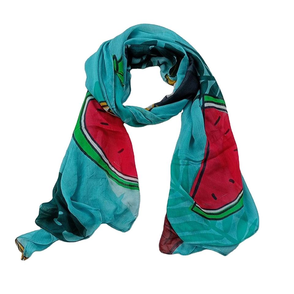 ผ้าพันคอผ้าฝ้ายโมดอลสำหรับผู้หญิง100% ลายพิมพ์ดิจิทัลแตงโมและนกน่ารักลายดิจิทัลลายรูปแบบคล้ายเพชรที่หลากหลาย