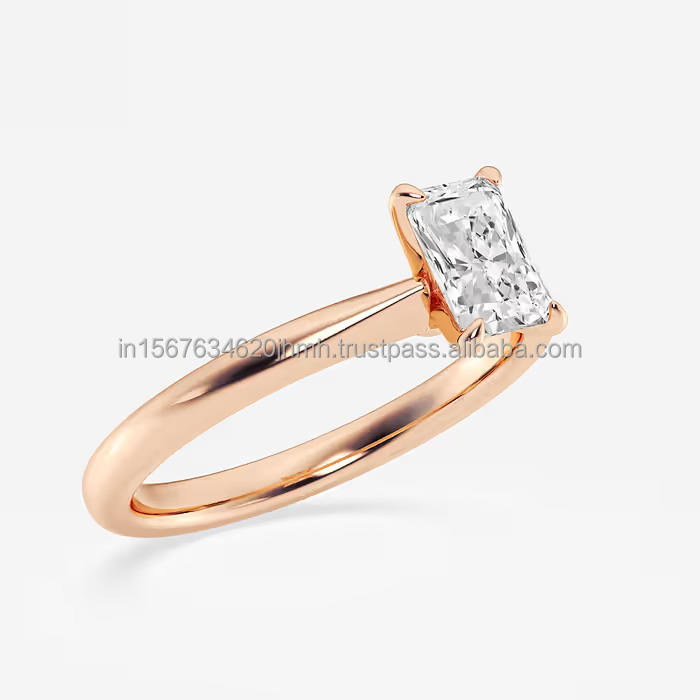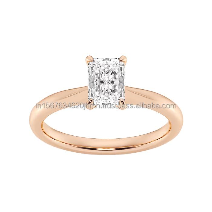 Igi ทอง14K ของผู้หญิงได้รับการรับรองจากห้องแล็บสร้างประกายตัดสีมรกตแหวนแต่งงานแหวนหมั้นของขวัญงานปาร์ตี้