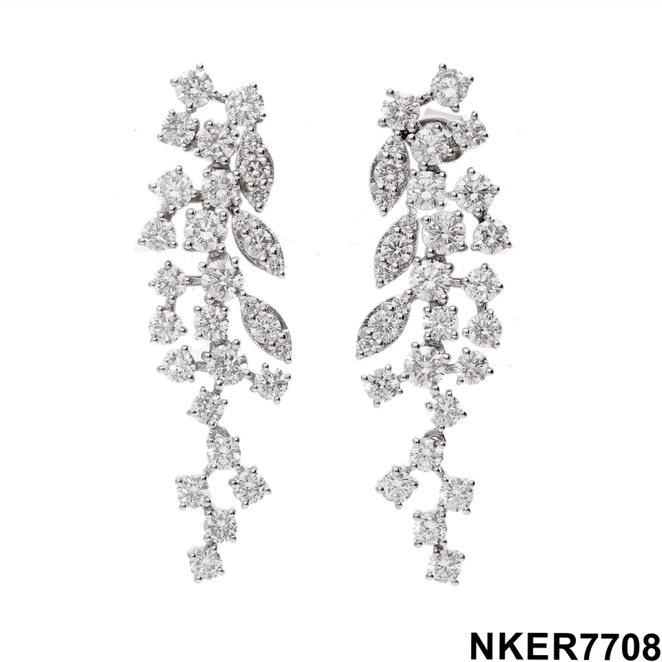 ต่างหูเพชรทรงกลมเจียระไนแบบบริลเลียนท์ลายใบไม้ทองคำ 14K สำหรับผู้หญิง ชุบโรเดียม ดีไซน์เหนือกาลเวลา เหมาะสำหรับทุกโอกาส