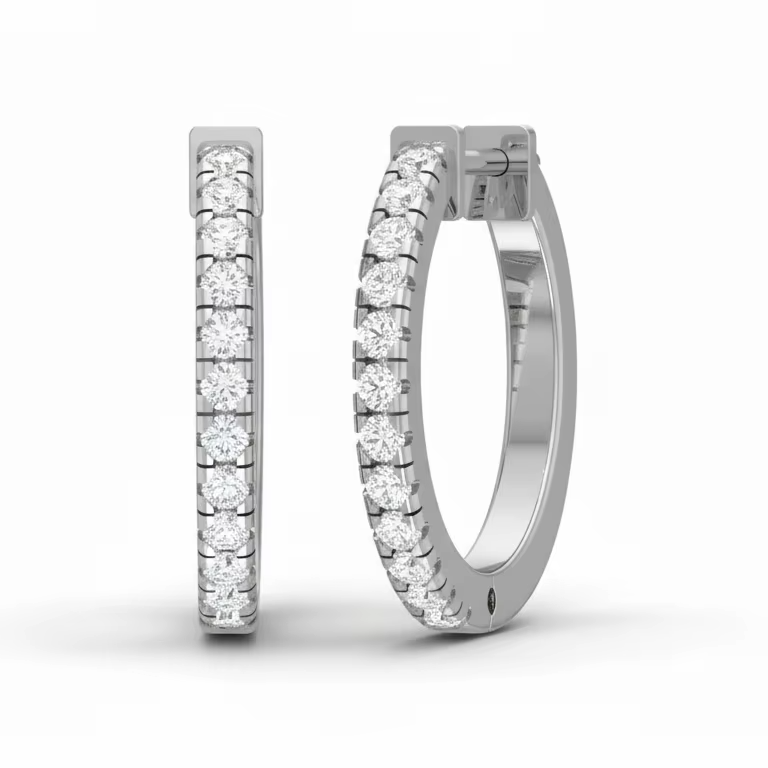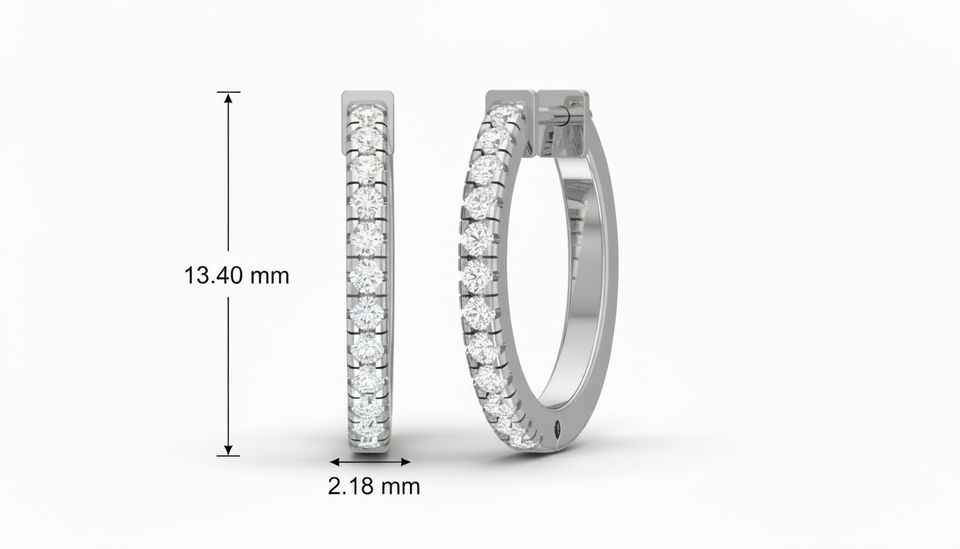 ต่างหูแบบห่วงประดับเพชรธรรมชาติทรงกลมเจียระไนแบบบริลเลียนท์ ชุบทองคำขาว 14K จำนวน 24 ชิ้น รุ่นคลาสสิก | เครื่องประดับผู้หญิงสุดหรู