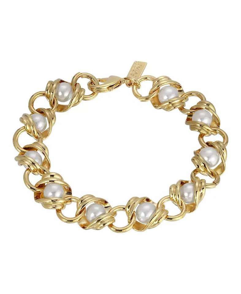 สร้อยข้อมือโซ่ทอง 14K สำหรับผู้หญิง ประดับมุกเทียม | 2028