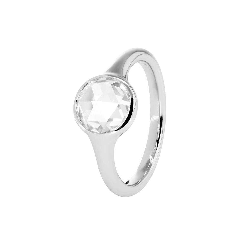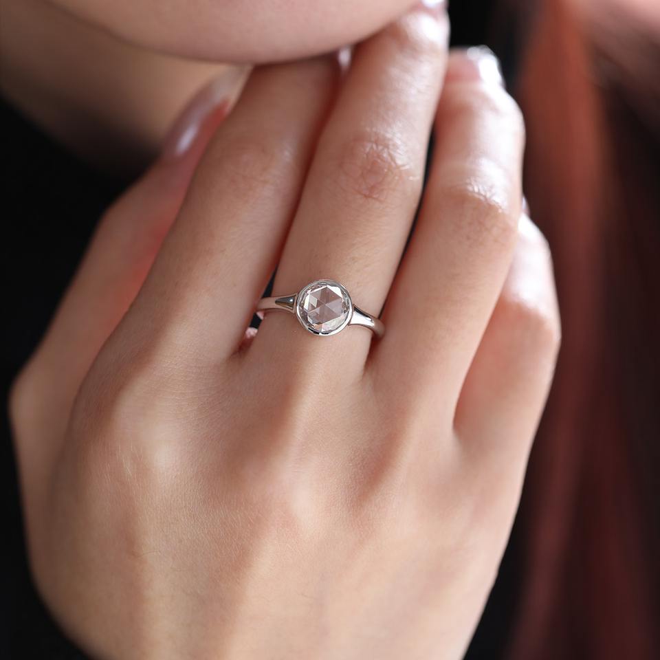 แหวนเพชรทรงโรสคัท 1.5 กะรัต ทองคำขาว 14K สำหรับผู้หญิง ดีไซน์ขอบเพชรแบบ Bezel พร้อมวงแหวนเรียว น้ำหนัก 3 กรัม ทันสมัย