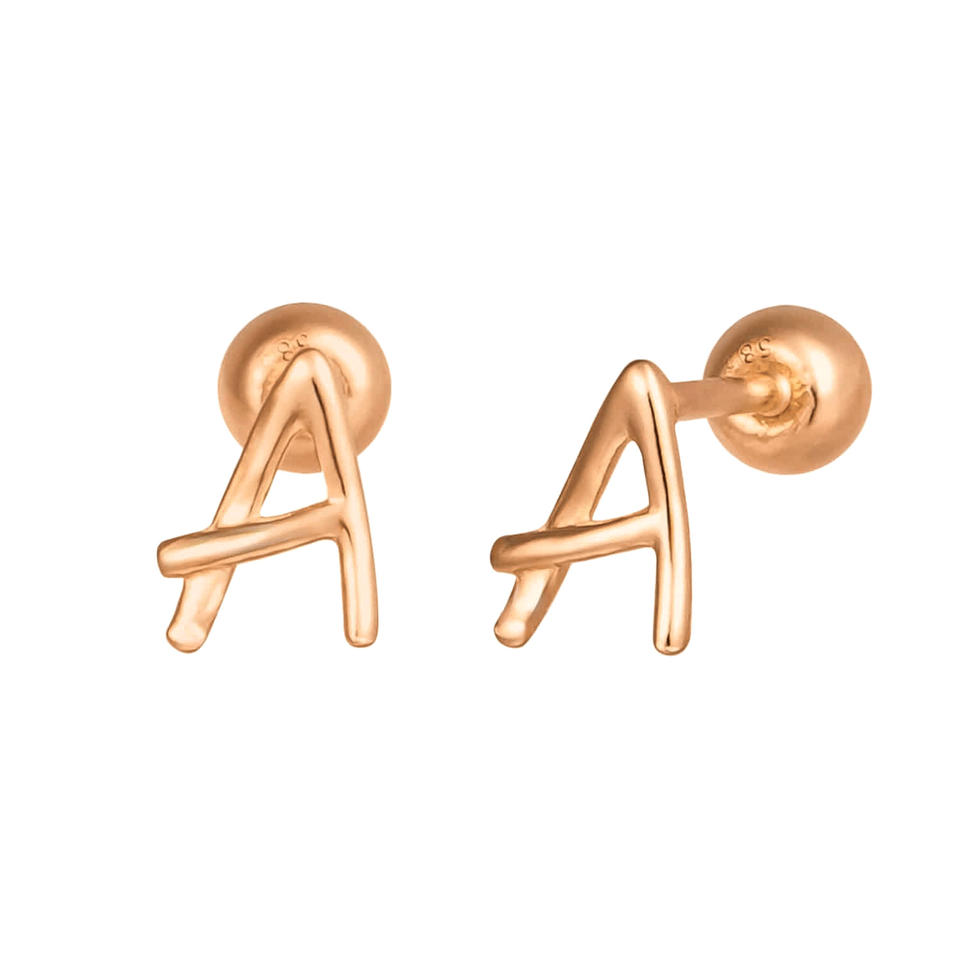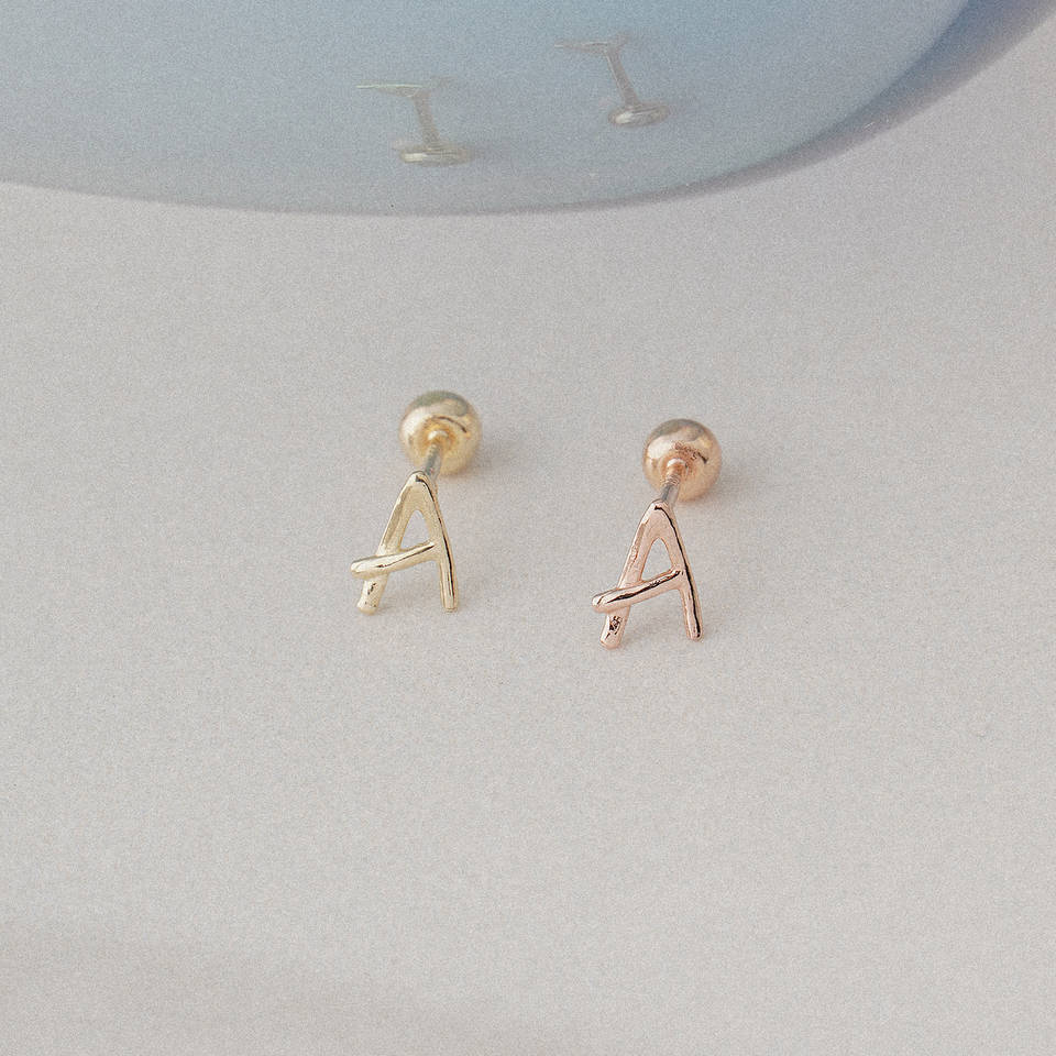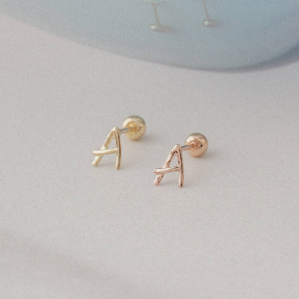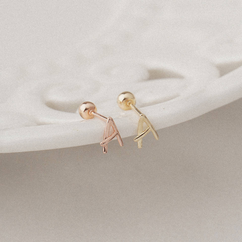 Women's 14k Gold Fine Stud Piercing Earrings Trendy Line Drawing Initial a Piercing Jewelry Daily Basic Wholesale From K-Jewelry