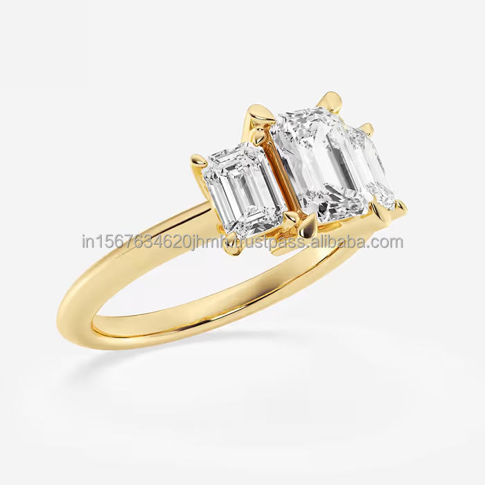 แหวนหมั้น/แต่งงานสุดหรูสีขาวทอง14K ของผู้หญิงแหวนหมั้น/แต่งงานวินเทจเครื่องประดับเพชรตัดมรกต igi/gia สำหรับปาร์ตี้