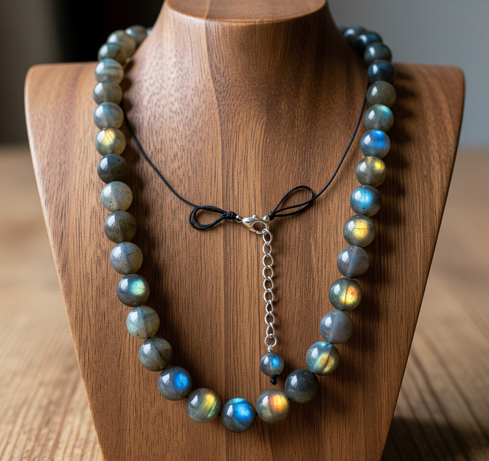 สร้อยคอลูกปัดหินลาบราดอไรต์ธรรมชาติสำหรับผู้หญิงเครื่องประดับแฟชั่นสุดอินเทรนด์925เงินขนาด18นิ้วสำหรับเป็นของขวัญ