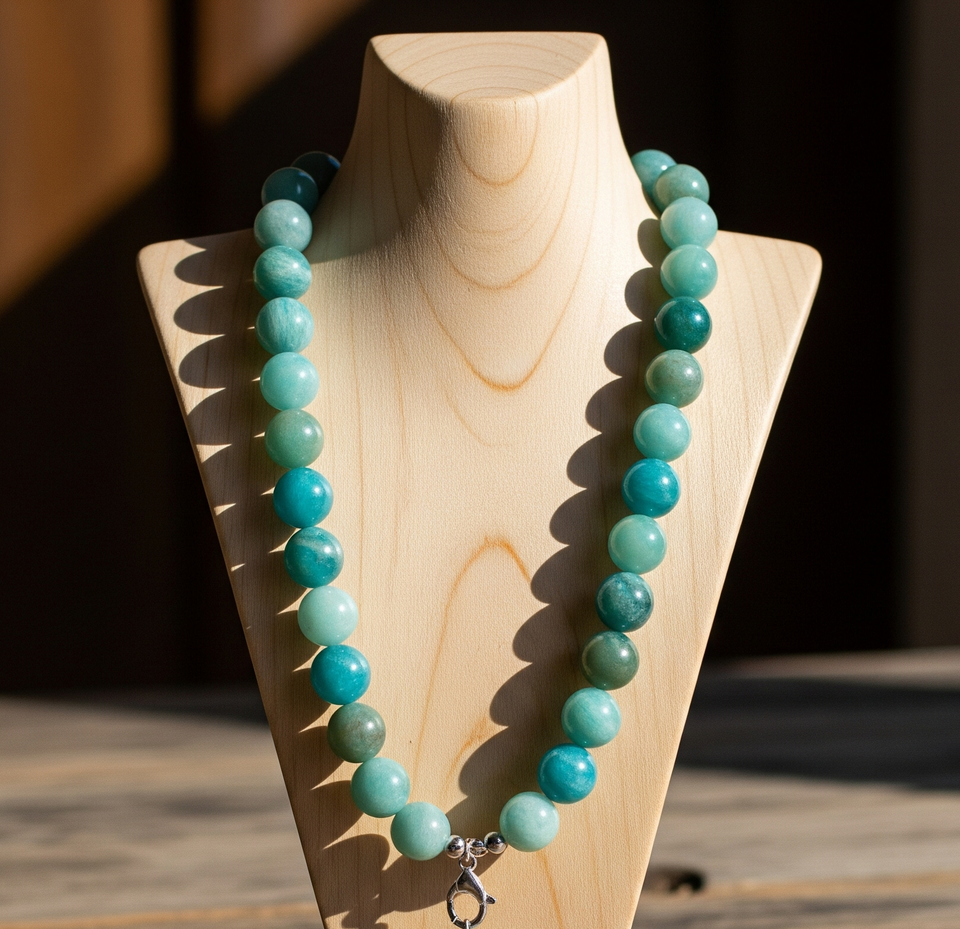 สร้อยคอลูกปัดหินอเมซอนธรรมชาติสำหรับผู้หญิงตัวล็อค925สีเงินขนาด18นิ้วดีไซน์แบบผูกปมเครื่องประดับแฟชั่นทันสมัย