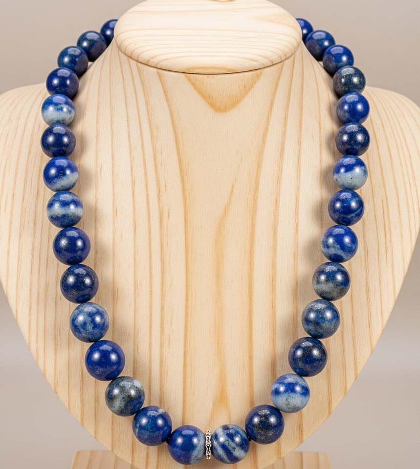 ล็อค925สีเงินขนาด18นิ้วของผู้หญิงดีไซน์แบบผูกปมมือเครื่องประดับแฟชั่นทันสมัยการรักษาธรรมชาติ Lapis Lazuli หินลูกปัดของขวัญ