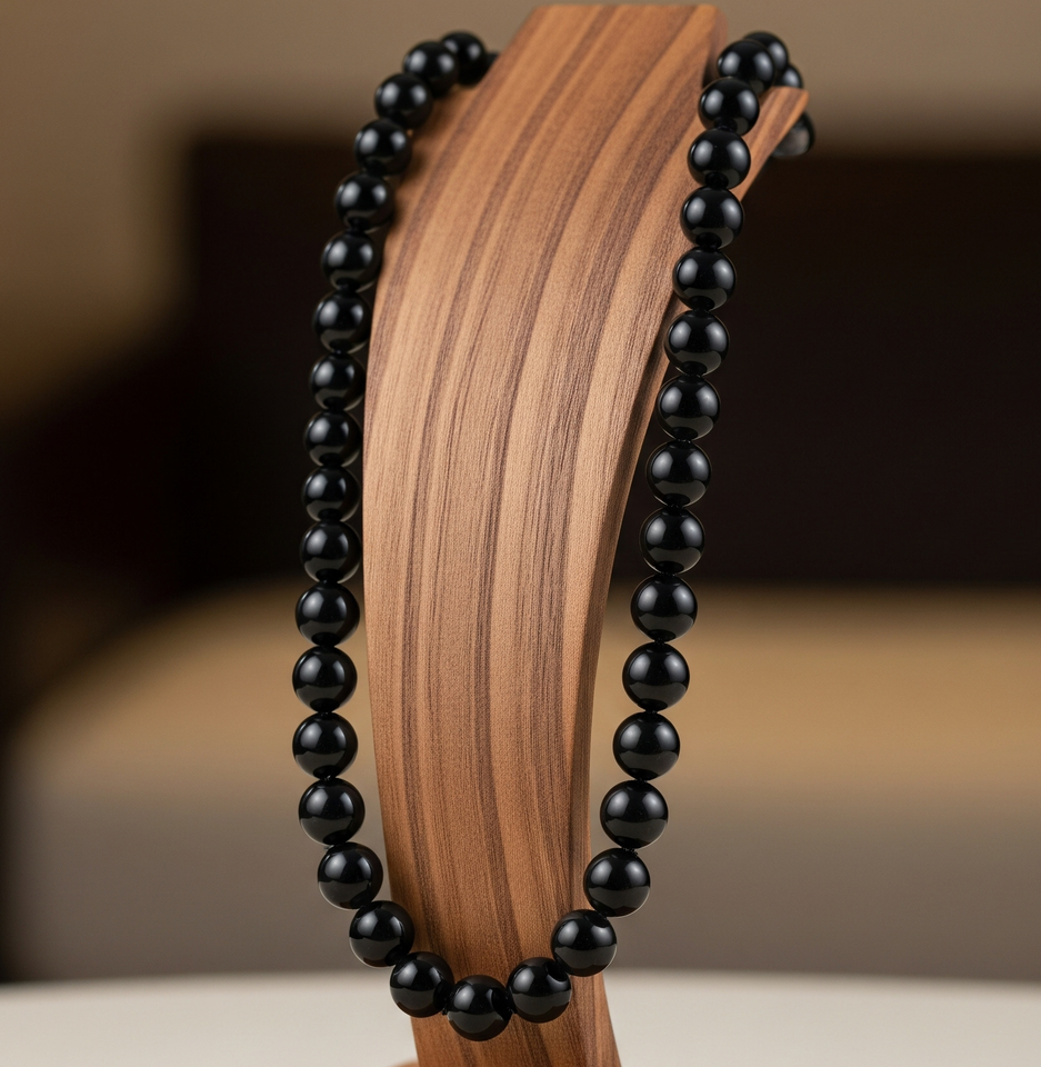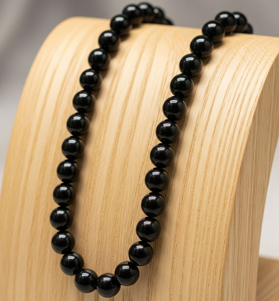 สร้อยคอลูกปัดหินโอนิกซ์สีดำสำหรับผู้หญิงเครื่องประดับแฟชั่นสุดอินเทรนด์925เงินขนาด18นิ้วสำหรับเป็นของขวัญ