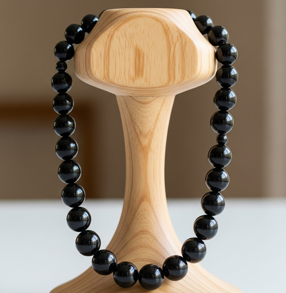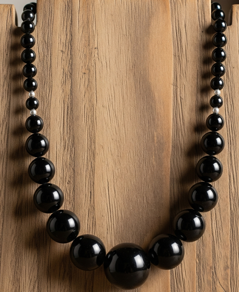 สร้อยคอลูกปัดหินโอนิกซ์สีดำธรรมชาติสำหรับผู้หญิงล็อค925เงินขนาด18นิ้วเครื่องประดับแฟชั่นทันสมัยดีไซน์แบบผูกปม