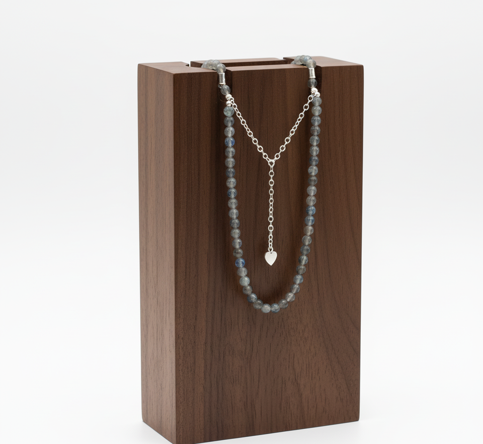 สร้อยลูกปัดหินลาบราดอไรต์ไข่มุกน้ำจืดสีเงินทิเบตขนาด18นิ้วสำหรับสตรีทันสมัย