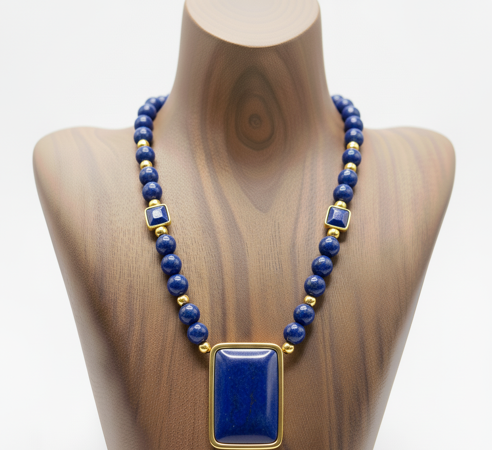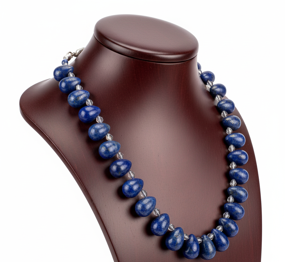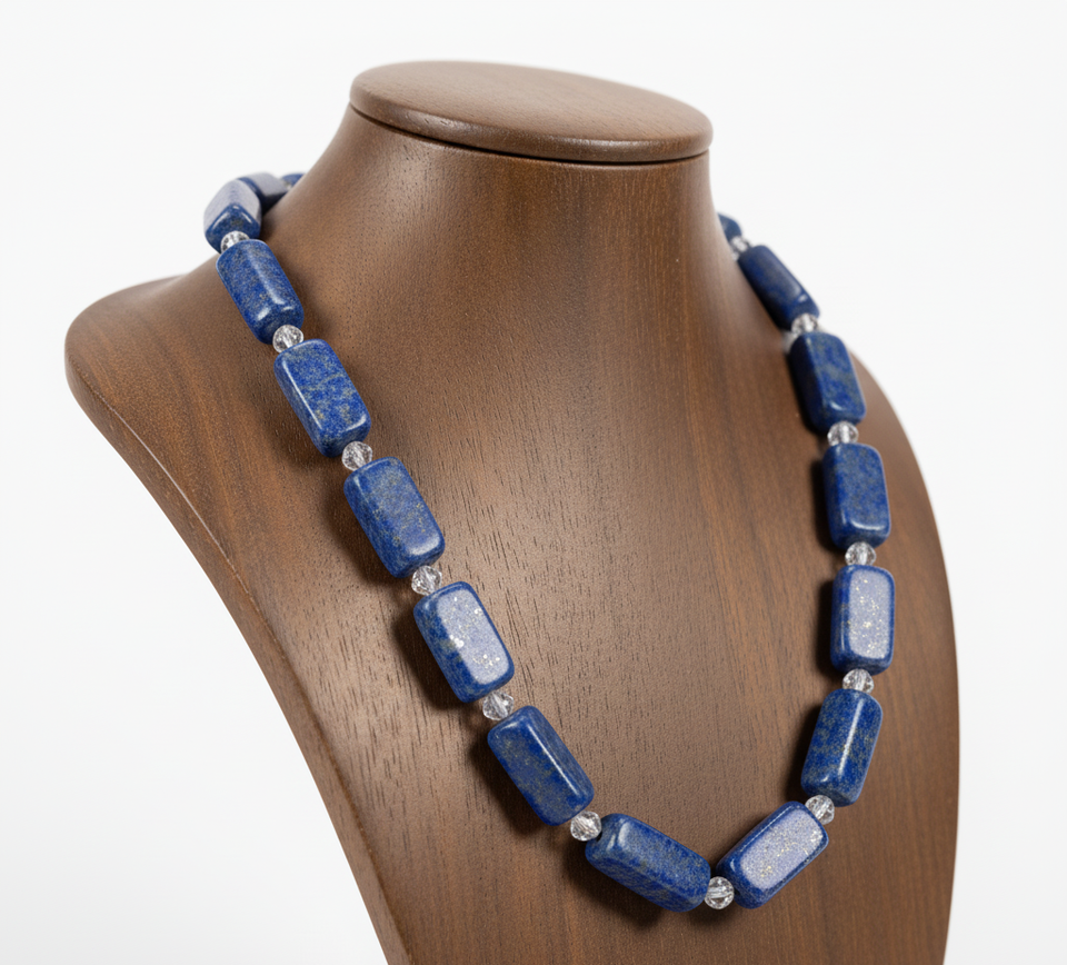 สร้อยคอเงิน925ขนาด18นิ้วของผู้หญิงสร้อยคอแฟชั่นทันสมัยดีไซน์แบบถักมือเครื่องประดับหิน Lapis Lazuli ธรรมชาติเพื่อเป็นของขวัญ
