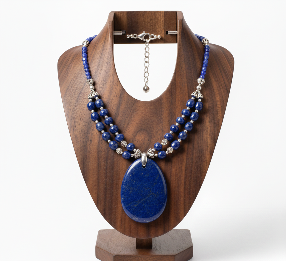 สร้อยคอเงิน925ทองขนาด18นิ้วของผู้หญิงทำด้วยมือคุณภาพสูงจากธรรมชาติลูกปัดหิน Lapis Lazuli มือของขวัญทันสมัย