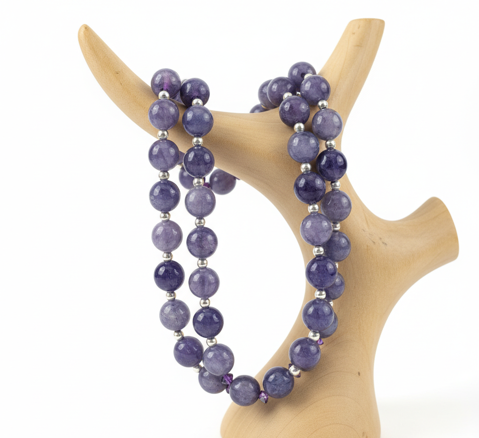 สร้อยคอลูกปัดทรงเรขาคณิตชุบทอง925เงินขนาด18นิ้วสำหรับผู้หญิงประดับด้วยมือแฟชั่นทันสมัยเครื่องประดับหินอเมทิสต์ธรรมชาติ