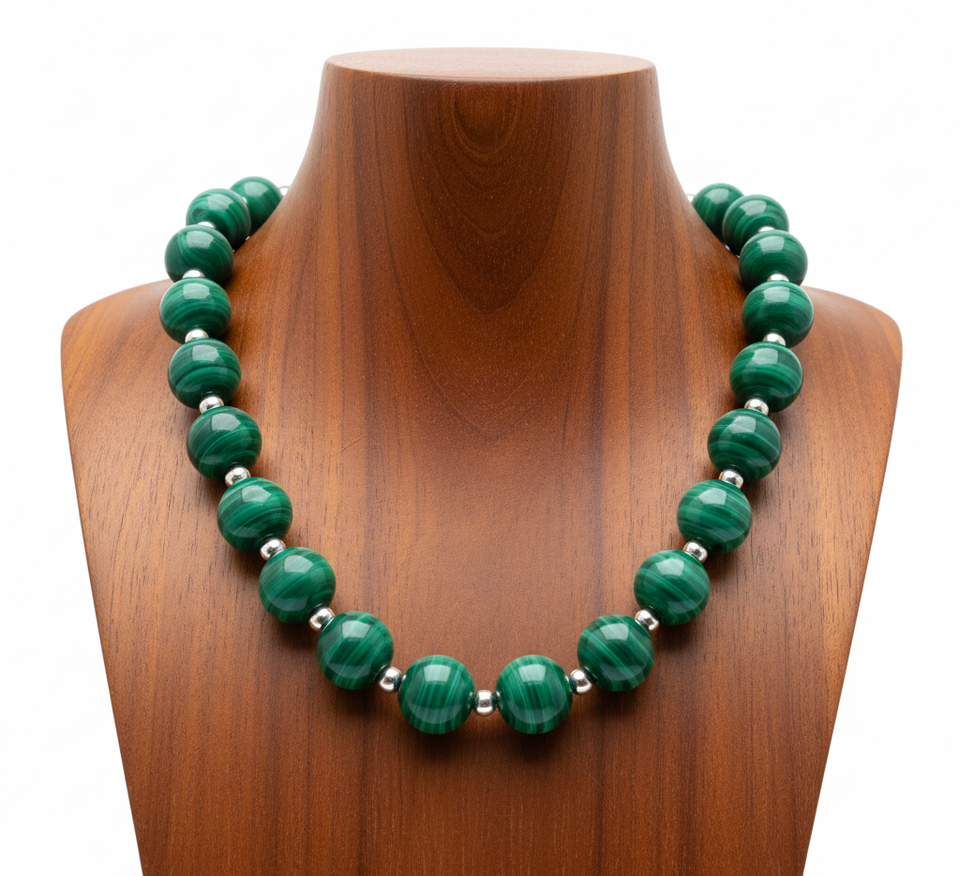 สร้อยข้อมือและสร้อยคอประดับด้วยหินมาลาไคต์ชุบทอง 24K เงินแท้ 925 ขนาด 18 นิ้ว สำหรับผู้หญิง ดีไซน์เรขาคณิตแบบผูกมือ ทันสมัย