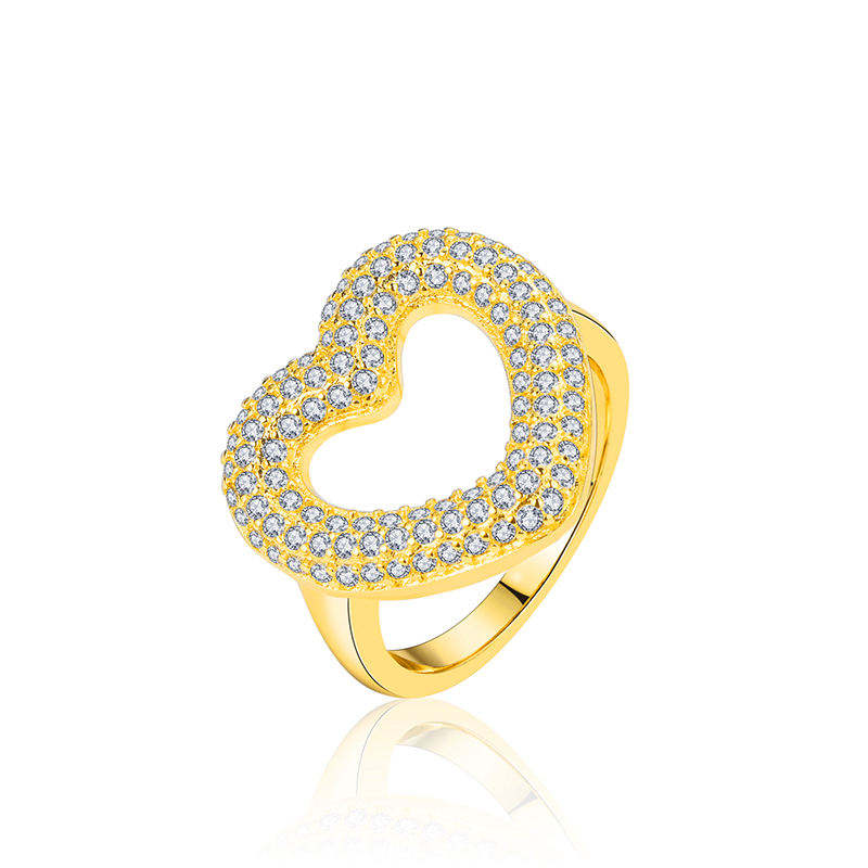 แหวนทองเหลืองผู้หญิงหินเพทายรูปหัวใจสีทอง/ทอง