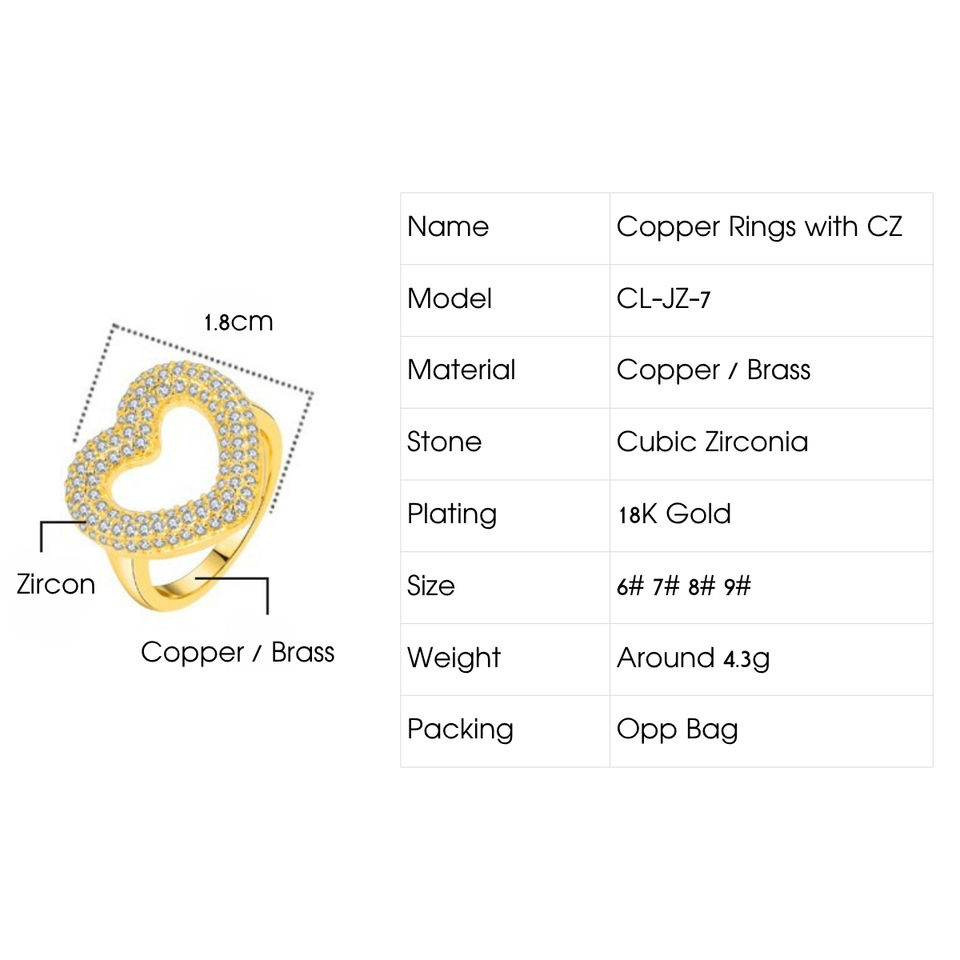 Women's 18K Gold Plated Copper Heart Ring with Cubic Zirconia Trendy Fashion Jewelry for Weddings & Special Occasions