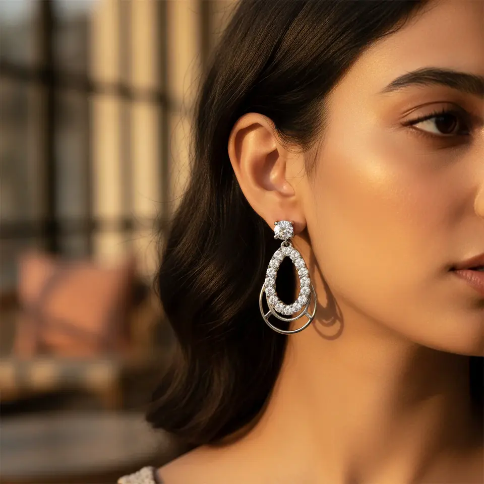 ต่างหูแบบติดหูทรงหยดน้ำทอง 18K สำหรับผู้หญิง ประดับด้วยเพชร CZ สีขาว โอปอล ควอตซ์ ต่างหูแบบห้อย ของขวัญเครื่องประดับ