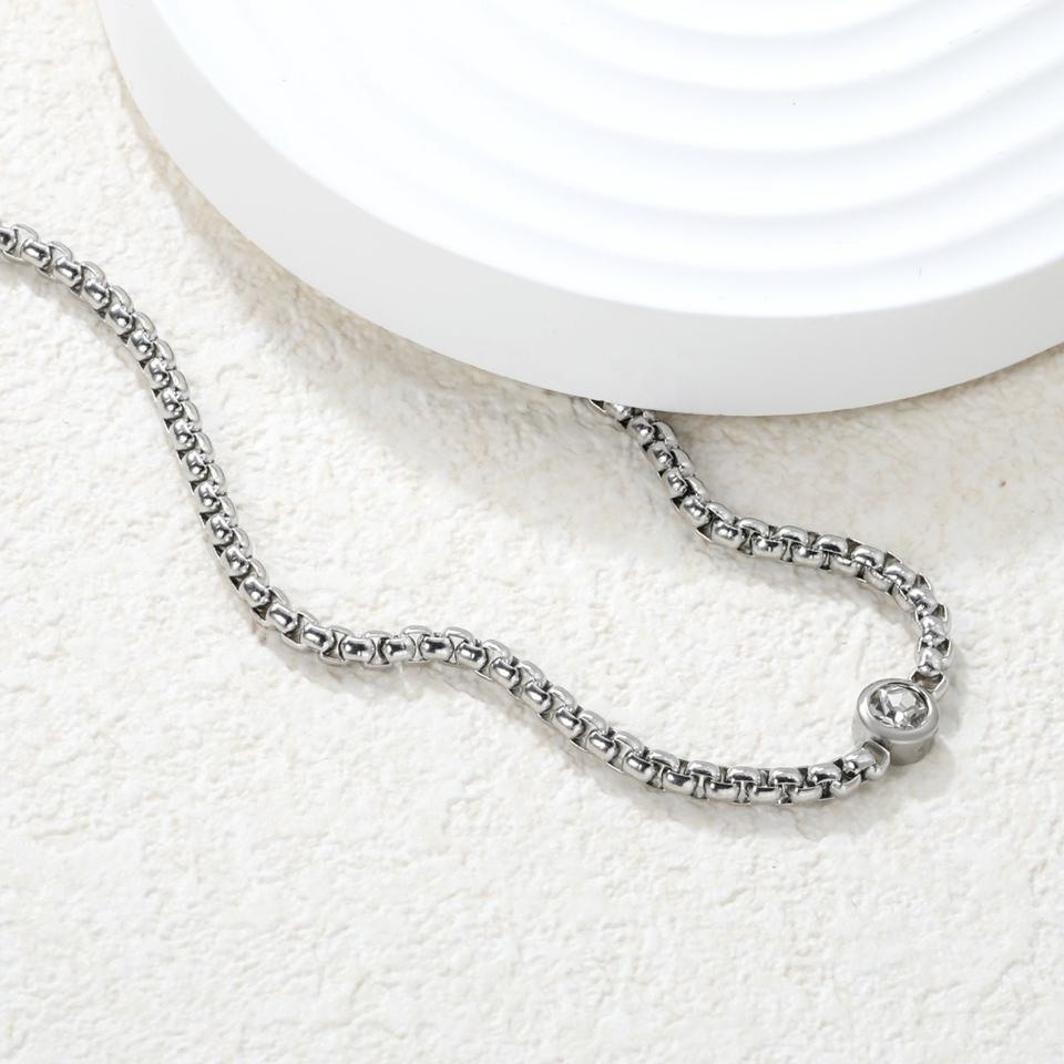 สร้อยคอผู้หญิงชุบทอง 18K PVD บนสแตนเลสสตีล ประดับเพชรคิวบิกเซอร์โคเนีย ดีไซน์เก๋ไก๋ทันสมัย รูปทรงเรขาคณิต