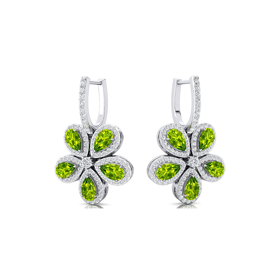 ต่างหูพลอยเพอริดอทธรรมชาติและเพชรแท้ต่างหูห้อยระย้าสำหรับผู้หญิงแต่งงาน18K ต่างหูกลุ่มดอกไม้สีทอง