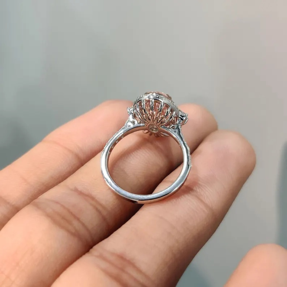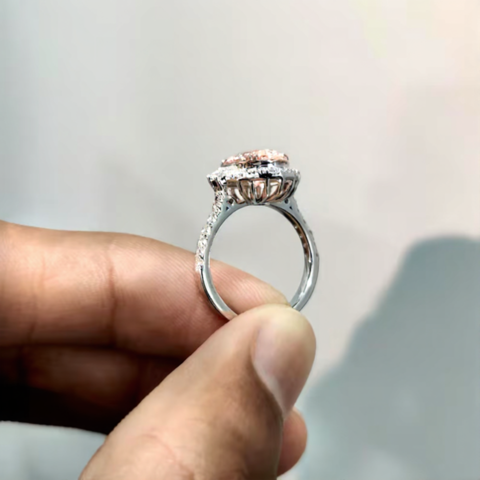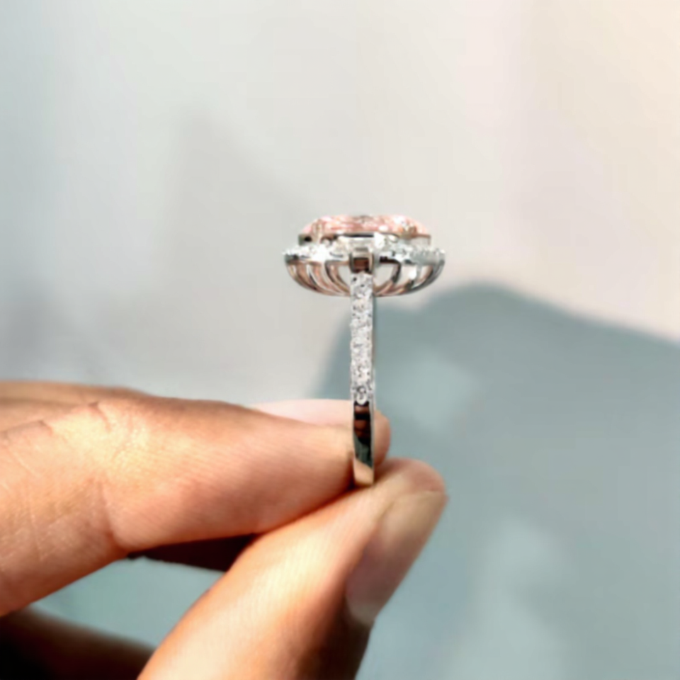 ชื่อสินค้า:แหวนเพชรซิเดอร์สีชมพูแฟนซี พร้อมดีไซน์ฮาโลและแหวนตกแต่ง