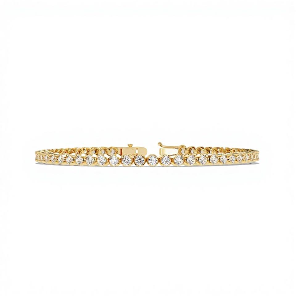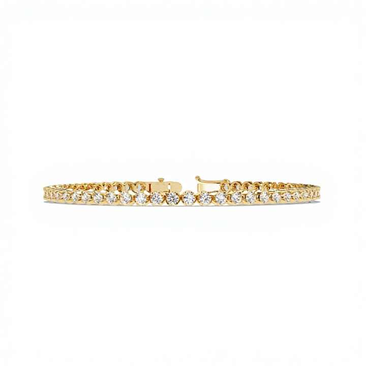 กำไลข้อมือเพชรทรงกลมขนาด 2.50 มม. สำหรับผู้หญิง ประดับเพชร CVD ที่เพาะเลี้ยงในห้องปฏิบัติการ บนตัวเรือนทองคำแท้ 14K พร้อมเพชรความใสระดับ VVS